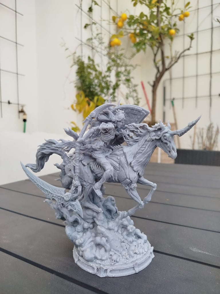 Todas las miniaturas incluyen bases y son impresas en 3d, con 12 k de resolución y usando resina de color gris oscuro para que se puedan apreciar mejor los detalles a simple vista, obteniendo un resultado hermoso aun sin pintarla. Usamos únicamente resina ABS ya que es mucho más resistente al uso y absorbe mejor los impactos y las vibraciones que las resinas normales, dándoles a tus miniaturas una vida mas larga y mayor durabilidad (por las dudas no las arrojes desde un primer piso)
